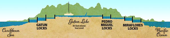 The real Panama Canal has specific water levels for ships to go over the land. In the game, water levels have no meaning. The goal is to create fast gameplay, not to copy the real canal.